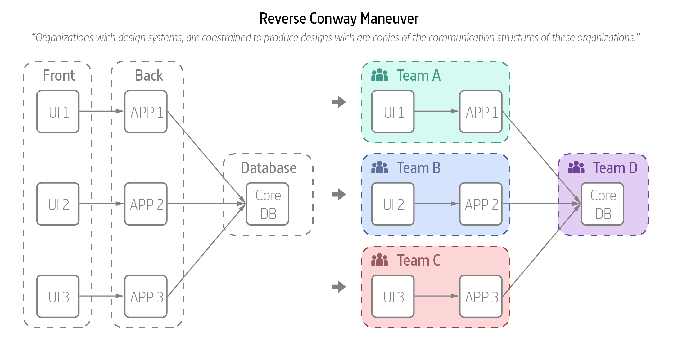 Conway law: Organizations wich design systems, are constrained to produce designs wich are copies of the communication structures of these organizations.
