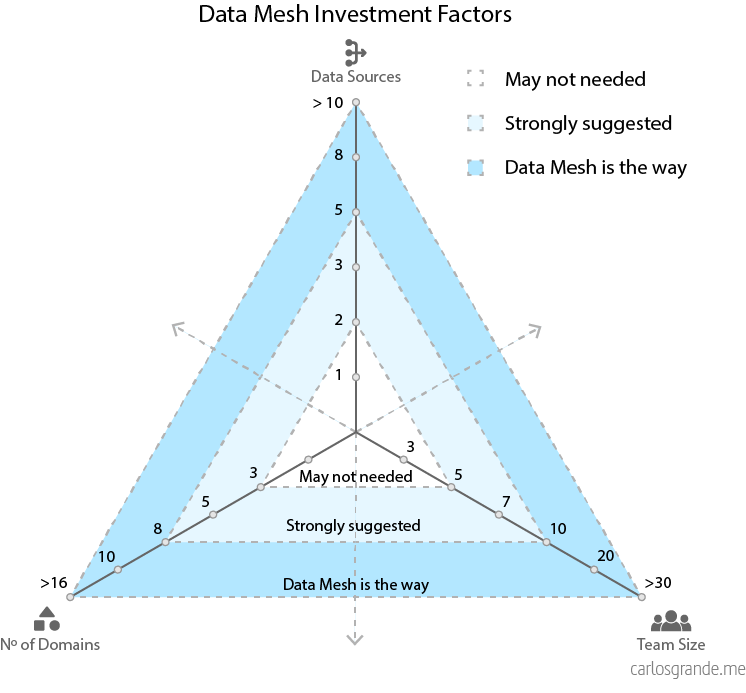 There is an excellent article from Barr Moses about Data Mesh. She proposes a simple calculation to determine if it makes sense for your organization to invest in a data mesh.